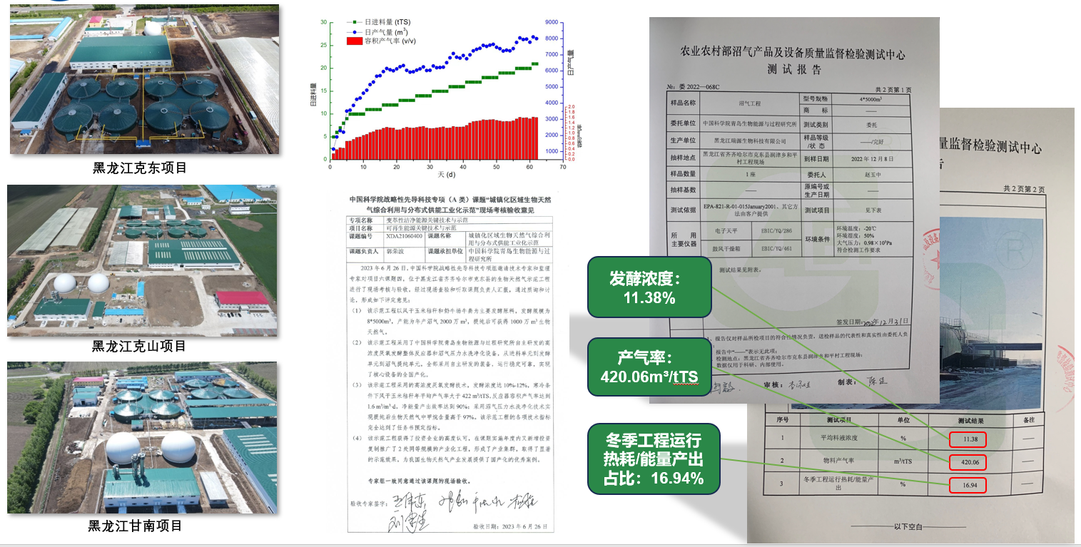 截至目前,中科聚能已在全国累计推广示范工程20余处,包括无棣新洁能、诸城舜沃、徐州卫蓝、德州齐河、江西鹰潭、苏州吴江、内蒙兴安盟以及黑龙江克东、克山、甘南、依安等大型生物天然气类项目,达到年处理生物质废弃物总量超200万吨、年产生物天然气总量超1亿立方米、年减排二氧化碳达100万吨,产业化项目在发酵规模、产气效率、容积产气率等核心指标均达到国际先进乃至领先水平,取得了显著的示范效益,在成功治理生物质有机废弃物的同时,实现城乡建设和环境保护协调发展。