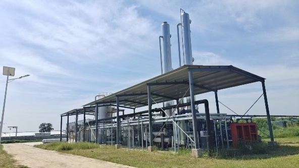 项目位于内蒙古突泉县,针对多元物料处理及资源化利用场景,采用高温多级仿生厌氧发酵装置,装置物料处理量30吨/天;产气能力2000立方米/天。反应器容积产气率≥3,发酵浓度超过18%,冬季可稳定产气。该项目是我国首个多级仿生干式厌氧发酵的产业化项目,于2025年成功实现产业化运行验证。